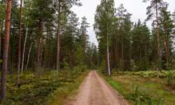 Die kleine Runde ist nur 1,5 km lang, hat es aber in sich. Ich starte am Parkplatz und spaziere einige Meter entlang der Forststraße, die auf meiner Karte ins Nirgendwo führt. Endlich habe ich wieder diesen wunderschönen Kiefernwald, den ich in Litauen so geliebt habe. Trotz des Regenwetters ist er lichtdurchflutet und ich erwarte alle paar Sekunden einen Elch.