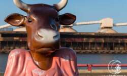 Kunstprojekt. Mal sind die Kühe klein, mal riesig.