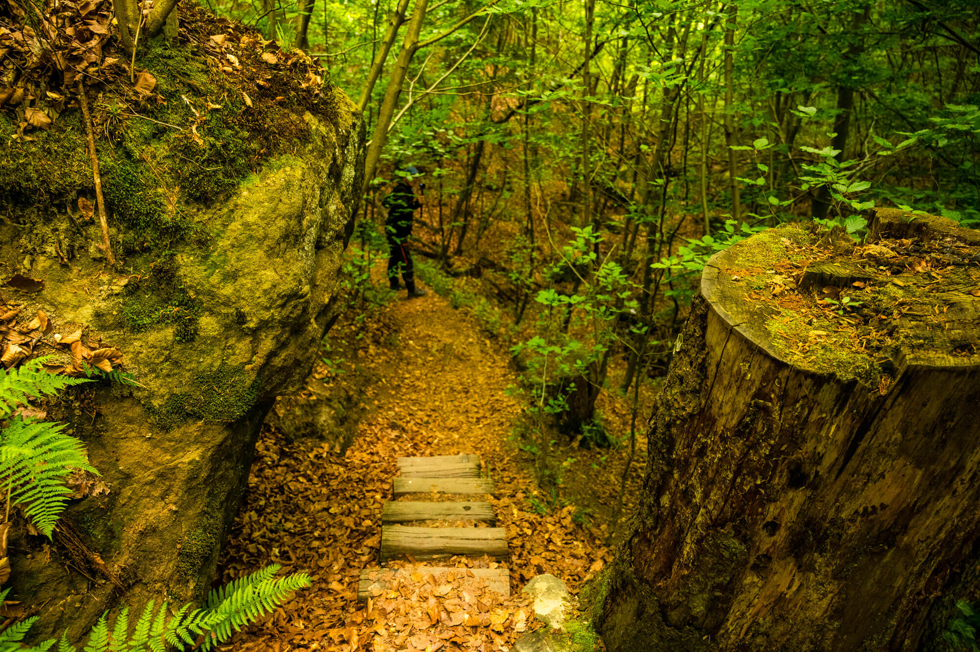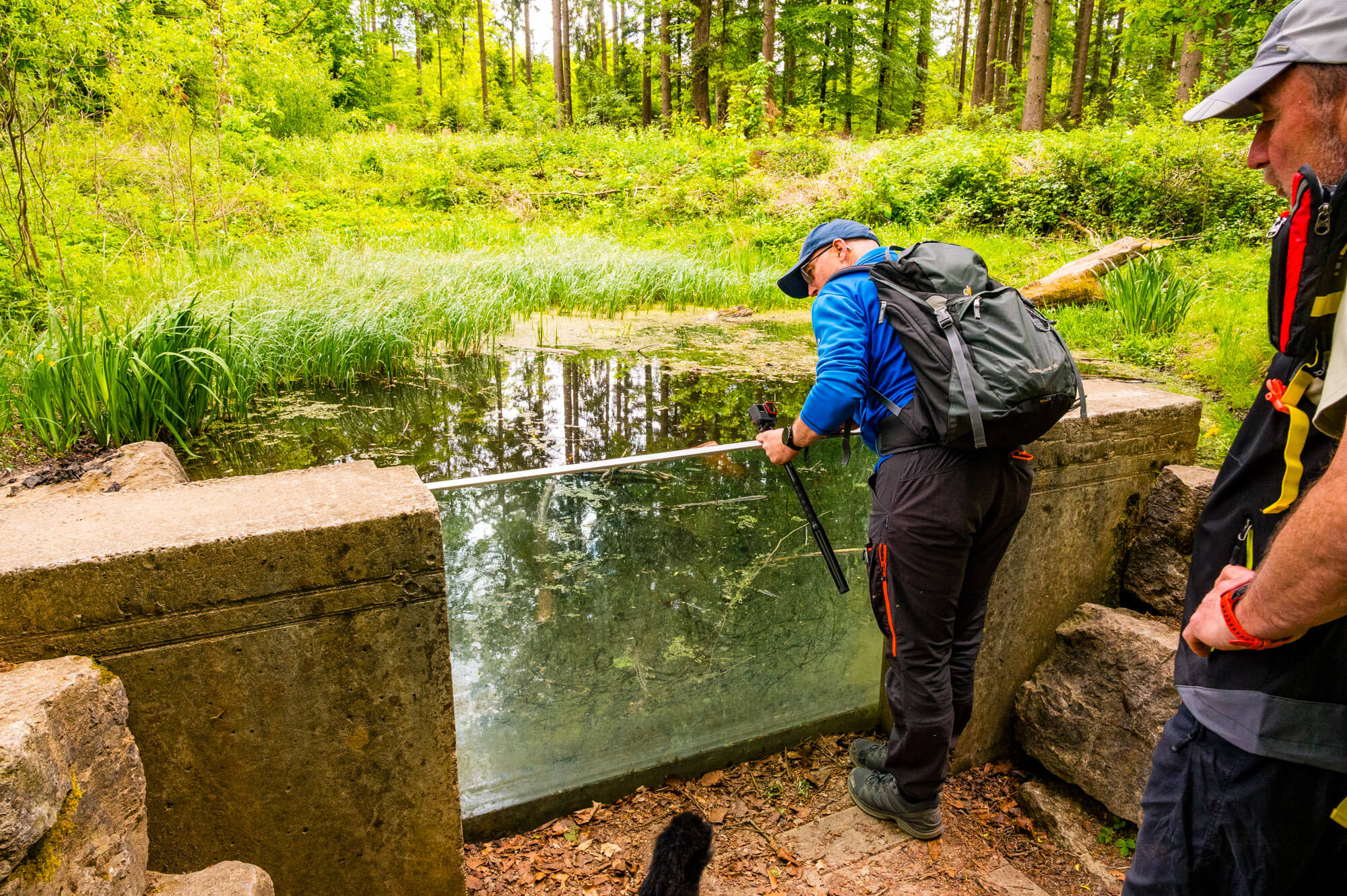 Ein weiteres Highlight unseres Wohnmobil Wochenende im Schwäbischen Wald war der Fuxi-Naturerlebnis-Pfad. Diesen konnten wir direkt vom Wohnmobilstellplatz in Mönchsberg erreichen – ideal! Der Pfad soll über alle Besonderheiten der Natur im Schwäbischen Wald aufklären und ist besonders für Familien konzipiert, aber wie sich zeigte, hatten auch drei erwachsene Männer ihren Riesenspaß. Der Wanderweg führte zwar leider zum größten Teil über breitere Forstwege, teilweise sogar über eine asphaltierte Straße, auf der uns einige Einheimische mit (aus unserer Wandersicht) deutlich zu hohem Tempo entgegenkamen. Aber er schlängelte sich auch durch wunderschöne Täler, vorbei an Flüssen und kleinen Sehenswürdigkeiten, durch das eine oder andere kleine Dorf und sogar die malerische Olgaschlucht. Das absolute Highlight auf der gesamten Strecke waren die wunderschön angelegten Stationen. Auf den insgesamt zwei Runden, die wir zu einer etwa 10 km langen Tour verbanden, gab es über 20 davon! Viele waren einfach toll gestaltet: Es gab Wasserspiele, einen prima Grillplatz für eine Pause, die Möglichkeit, einen Specht am Baum „hacken“ zu lassen, bequeme Liegen zum Ausruhen, einen Hohen Stein (einen anderen als bei Wüstenrot!), in dem man singen konnte (die Akustik war der Hammer!), und viele informative Tafeln, die einem die Natur näherbrachten. Obwohl wir zu dritt unterwegs waren und Maxi die ganze Zeit dabeihatten, waren wir alle drei gefangen vom Spaß dieser Stationen und nahmen uns ausgiebig Zeit dafür. Es gibt sogar ein Rätselheft, das man entlang der Strecke ausfüllen kann – eine tolle Idee, auch wenn wir uns mehr auf das Entdecken konzentrierten. Ein wirklich gelungenes Naturerlebnis für dieses Wohnmobil Wochenende im Schwäbischen Wald.