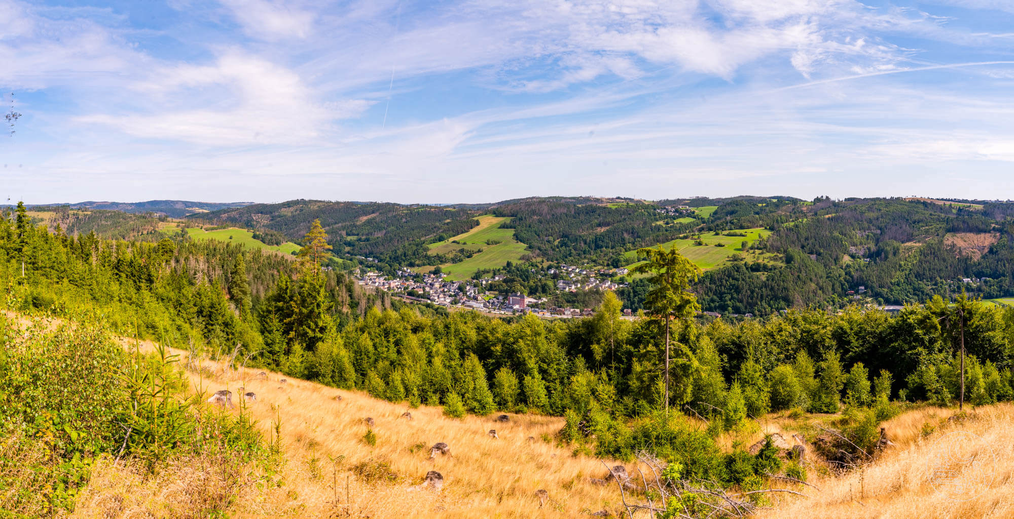 Unsere Tour durch den Frankenwald geht jetzt erst richtig los. Als Nächstes wollen wir das Infozentrum in Steinbach am Wald besuchen – ein guter Einstieg in die Geschichte und Geografie der Region. Danach wartet eine Nacht auf dem Stellplatz beim Altvaterturm, von dem man bei gutem Wetter bis ins Fichtelgebirge schauen kann. Auch die Ködeltalsperre, die größte Talsperre des Frankenwalds, steht auf dem Programm – ein technisches Denkmal und landschaftliches Kleinod. In Bad Steben gönnen wir uns vielleicht einen kleinen Thermenbesuch, bevor uns die nächste Wanderung ins Höllental führt – mit Schluchten, Eisenbahnbrücken und wilder Natur.