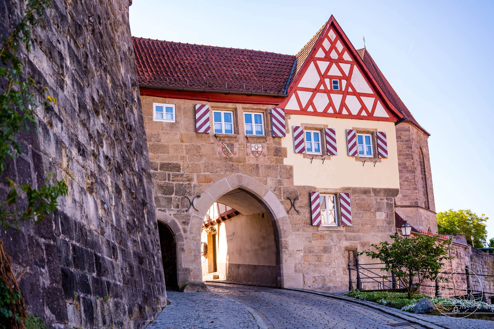 Ich nähere mich der Oberstadt und stehe vor der gewaltigen Stadtmauer. Ihre Anfänge reichen ins 13. Jahrhundert zurück, mehrfach verstärkt und nie durchbrochen. Nur einmal schossen die Schweden im Dreißigjährigen Krieg ein Loch in die Mauer – noch heute weisen rosafarbene Steine auf die Stelle hin. Doch die Frauen von Kronach griffen ein, warfen Pech und Steine von den Mauern und halfen entscheidend, die Stadt zu verteidigen. Ich lege die Hand an das Mauerwerk und spüre den Stolz dieser Geschichte. Maxi schnuppert am Torbogen, als wolle er selbst die alten Zeiten wittern.
